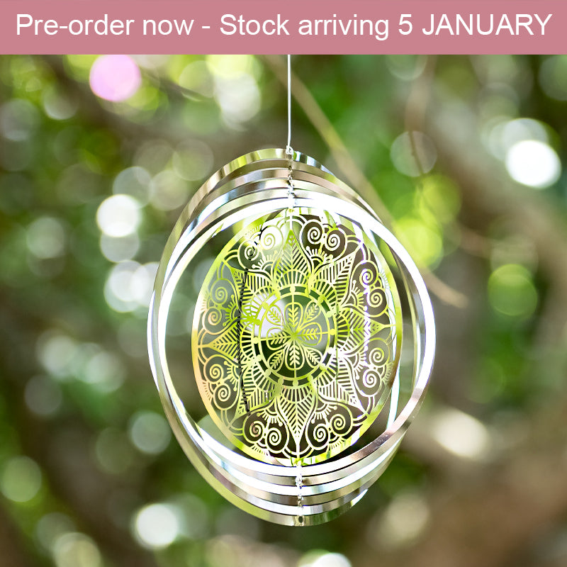 This 3D Mandala Wind Spinner is a beautiful addition for your garden, elegantly designed to shimmer in the sun's rays! Crafted from stainless steel for durability, it rotates 360° -- perfect for the indoors or outdoors! Setting up is a breeze (instructions are on the package!). Size:15cm x 15cm
