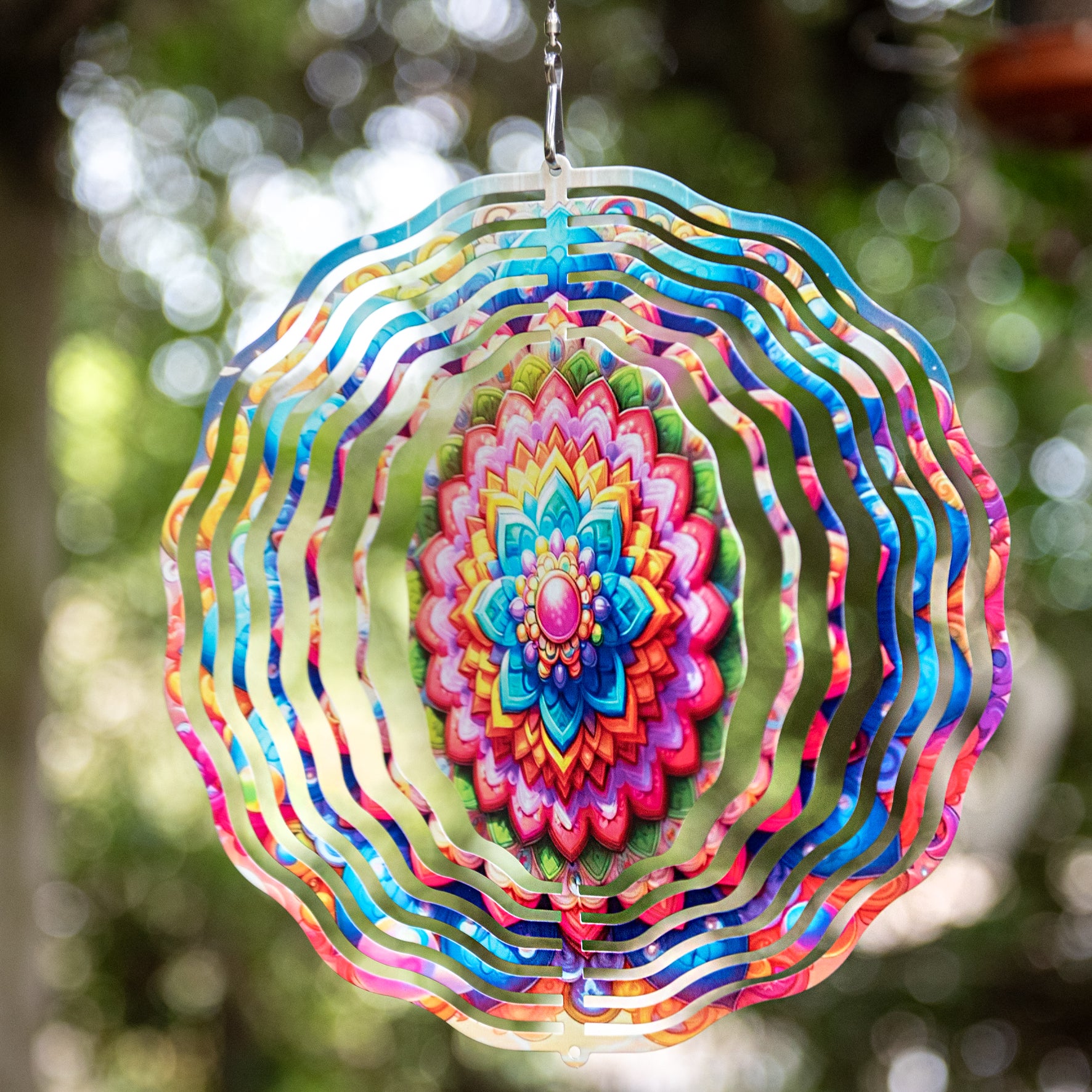 For optimal performance, the 3D Mystical Wind Spinner - 25cm should be placed in a location with strong wind, as it is larger and heavier than our other wind spinners. Made from resilient stainless steel, it captures sunlight with a dazzling display of vibrant, artistic designs that will enhance any garden or entertainment space. Setup is easy with included instructions.