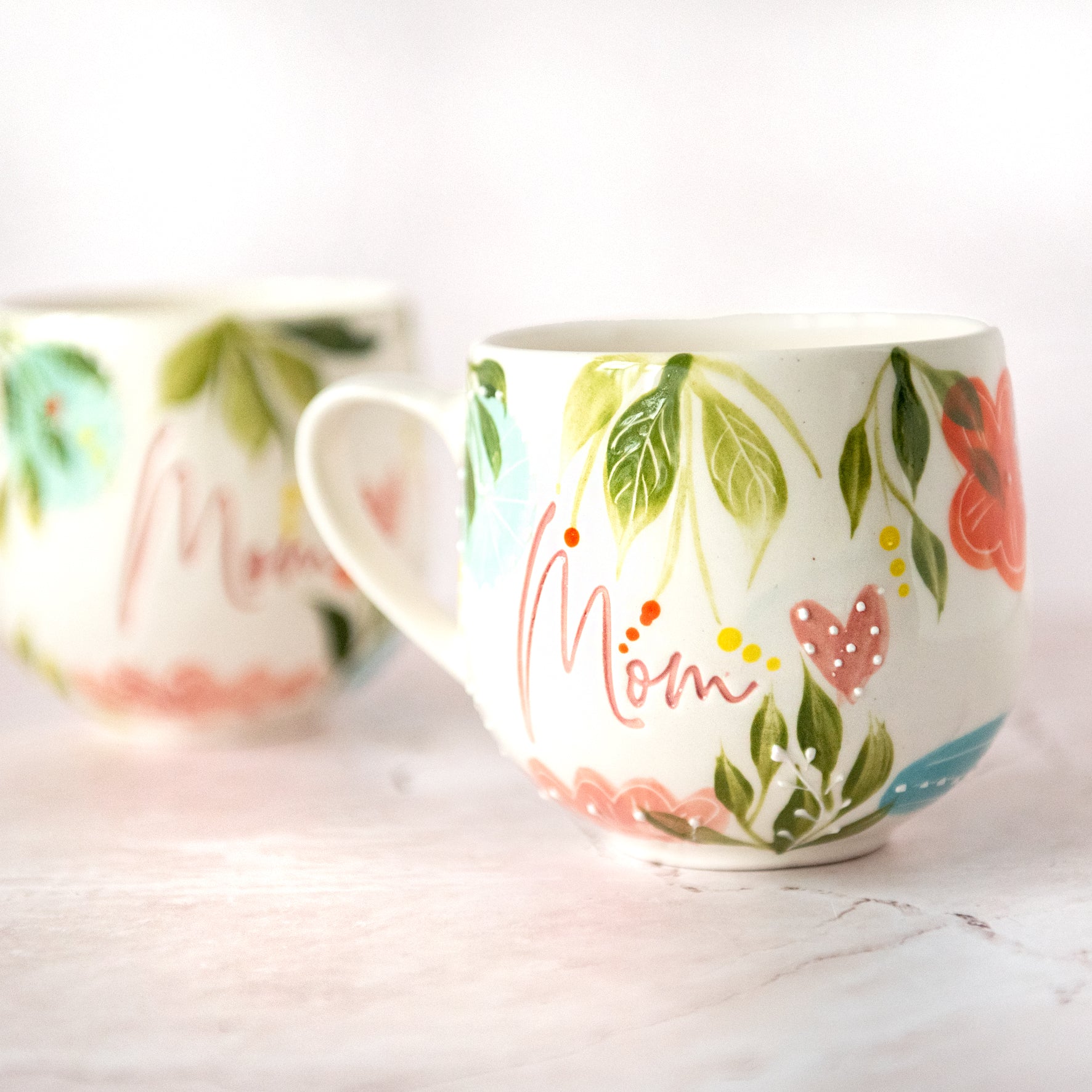 This locally made Hand Painted Mom Mug showcases an exquisite, delicately hand painted artistic design. The vibrant floral colours celebrate Mom's exceptional qualities and make her the best mom ever. Add some joy to her morning coffee or evening tea with this thoughtful token of appreciation for all the heartfelt moments she pours her heart into. Mug size: 400ml