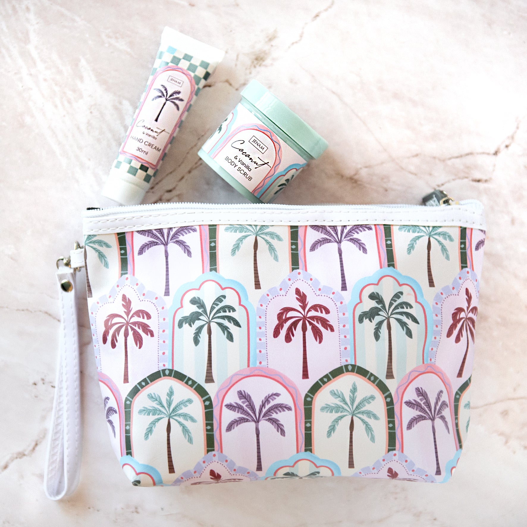 The 80g body scrub gently exfoliates with coconut and vanilla, helping to reveal smoother, refreshed skin, while the 30ml hand cream nourishes your hands with the same comforting fragrance.